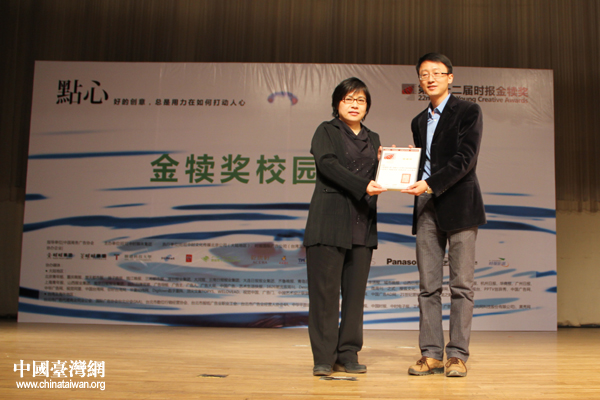 組委會(huì)為中國傳媒大學(xué)頒發(fā)感謝狀。(中國臺(tái)灣網(wǎng) 張潔 攝)