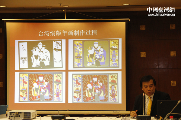 李焯然教授介紹臺灣年畫的技術(shù)創(chuàng)新。(中國臺灣網(wǎng) 張潔 攝)