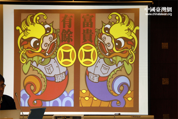 圖為題材創(chuàng)新的臺灣年畫。(中國臺灣網(wǎng) 張潔 攝)
