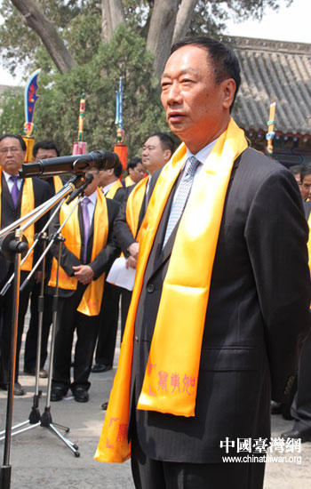 臺(tái)灣鴻海集團(tuán)董事長(zhǎng)郭臺(tái)銘致辭。(中國(guó)臺(tái)灣網(wǎng) 李典典 攝)