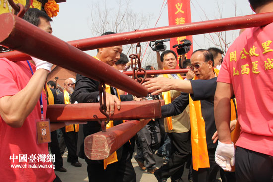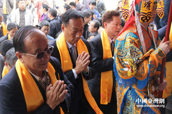 臺灣鴻海集團董事長郭臺銘迎駕。(中國臺灣網 李典典 攝)