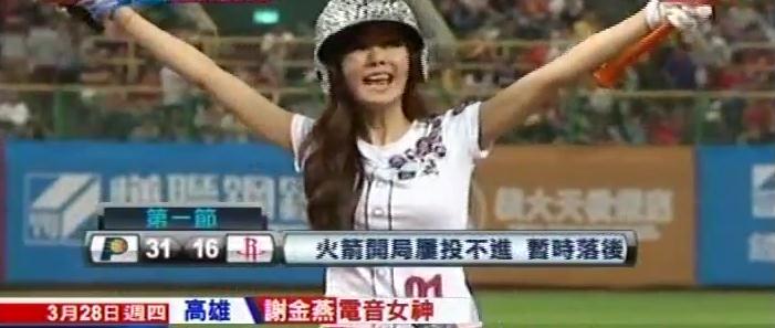 臺(tái)灣職棒大聯(lián)盟犀牛隊(duì)主場(chǎng)開幕賽,臺(tái)灣電音歌手謝金燕開球。(圖片來自臺(tái)媒)
