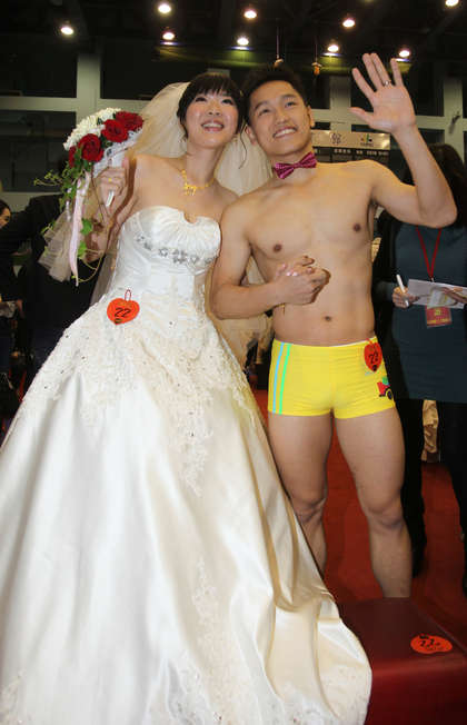 中國(guó)臺(tái)灣網(wǎng)3月31日消息 據(jù)臺(tái)灣媒體報(bào)道,臺(tái)北市民政局今天在臺(tái)北體育館舉辦今年首場(chǎng)聯(lián)合婚禮,共有38對(duì)新人參加,現(xiàn)場(chǎng)彌漫著幸福浪漫,全場(chǎng)最吸睛的新人,是擔(dān)任游泳教練的體育老師陳瑞辰,穿上鮮黃色四角泳褲,牽著身穿白紗的老婆步入會(huì)場(chǎng),腹肌明顯精壯的好身材,引發(fā)在場(chǎng)觀禮家屬一陣驚呼、歡聲雷動(dòng),人魚(yú)線若隱若現(xiàn),民眾直呼太可惜,“穿三角褲看得比較清楚”。
