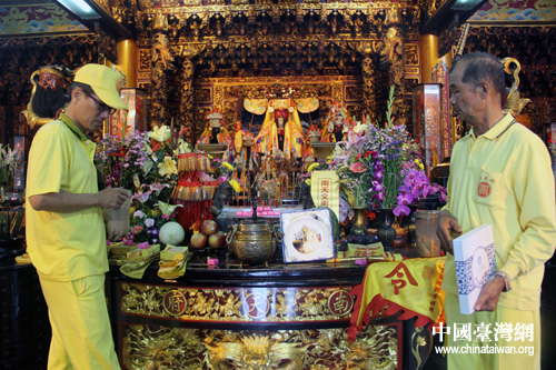 山西關(guān)公祖廟圣像停駕臺(tái)南南天府。(中國(guó)臺(tái)灣網(wǎng) 李典典 攝)
