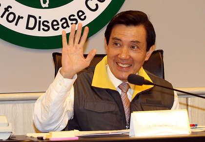 馬英九視察H7N9流感“中央流行疫情指揮中心”。(圖片來自臺媒)