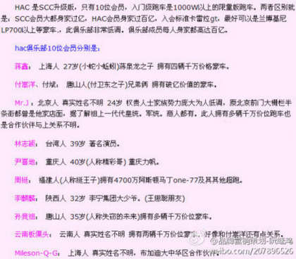 網(wǎng)絡(luò)流傳跑車俱樂部名單。(圖片來自臺媒)