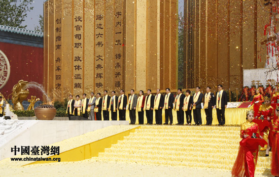 海內(nèi)外同胞代表參加拜祖大典第九項“天地人和”。(中國臺灣網(wǎng) 李丹 攝)