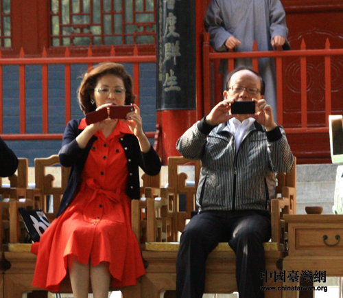 4月13日下午,中國國民黨副主席蔣孝嚴(yán)及夫人前往嵩山少林寺觀看少林功夫表演(中國臺灣網(wǎng) 朱煉 攝)