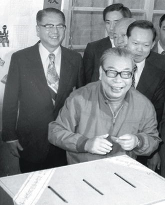 1977年,林洋港(左后)陪同蔣經(jīng)國(guó)(左前)投票選舉臺(tái)北市議員。(來(lái)源:臺(tái)灣《聯(lián)合報(bào)》)