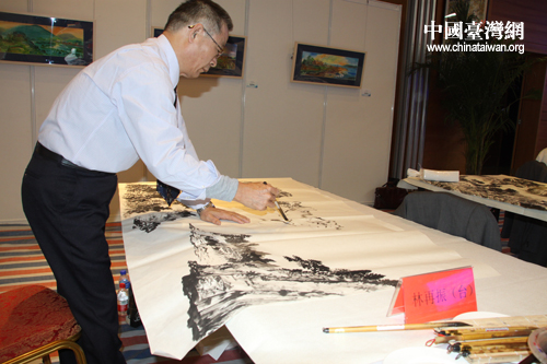 臺(tái)灣書畫家林再振在進(jìn)行創(chuàng)作。(中國(guó)臺(tái)灣網(wǎng) 郭慶娜 攝)