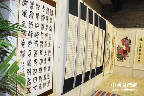 筆會同時進(jìn)行展出的南臺灣書畫家作品。(中國臺灣網(wǎng) 郭慶娜 攝)
