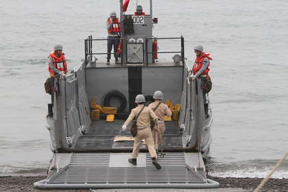 中國臺灣網(wǎng)4月18日消息 據(jù)臺灣媒體報道,臺軍演習(xí)又出糗!為配合臺軍“漢光29號演習(xí)”,臺軍海軍司令部今天清晨在屏東枋山鄉(xiāng)加祿堂海灘進行“聯(lián)興102-1號”兩棲登陸作戰(zhàn)操演。演練8舟波的登陸搶灘作業(yè)過程中,1輛已登陸搶灘的LCM機械登陸艇的閘門,欲離灘時一度關(guān)不起來,最后由修護人員上艇才排除故障。(中國臺灣網(wǎng) 焦源源)