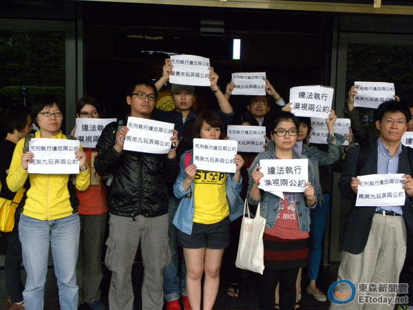 4月19日,臺(tái)灣“廢死聯(lián)盟”等民間團(tuán)體前往臺(tái)當(dāng)局“法務(wù)部”抗議再次執(zhí)行死刑。(圖片來源:臺(tái)灣“東森新聞網(wǎng)”)