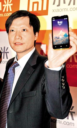 小米手機(jī)24日正式進(jìn)軍臺灣市場,圖為董事長雷軍展示小米手機(jī)。(資料圖)