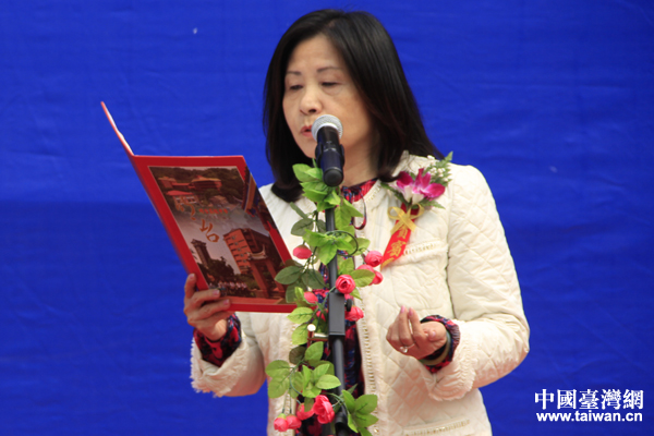 “林獻(xiàn)堂抗日事跡陳列館”暨北京五桂樓會(huì)館開館儀式4月28日在北京臺(tái)灣街五桂樓舉行。圖為林獻(xiàn)堂孫媳林芳媖致辭。(中國臺(tái)灣網(wǎng) 何建峰 攝)