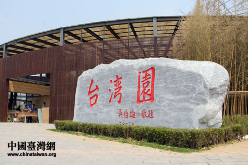入口矗立著國民黨榮譽(yù)主席吳伯雄先生親題“臺灣園”之名的巨石。 (中國臺灣網(wǎng) 黃艷艷 攝)