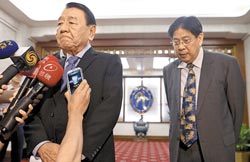 菲律賓總統(tǒng)特使裴瑞茲(左)15日晚間拜會臺當局“外交部”后,面色鐵青地強調(diào)自己代表菲律賓總統(tǒng)來向“廣大興28號”事件受害者洪石成的家屬表達深刻歉意。白熙禮(右)則表情凝重陪在一旁。(圖片來自:臺灣《中國時報》)