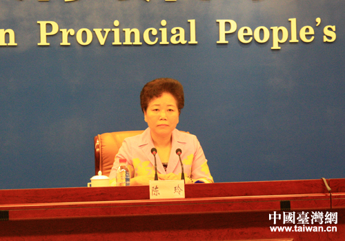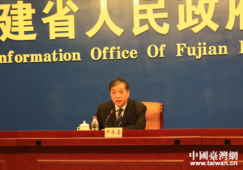 福建省政府新聞辦主任盧承圣主持發(fā)布會(huì)。(中國(guó)臺(tái)灣網(wǎng) 李瑞艷 攝)