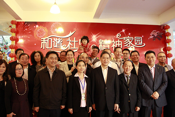 17日下午,在昆山花都小區(qū)考察的中臺辦、國臺辦主任張志軍與小區(qū)居民、社區(qū)工作人員合影。(中國臺灣網(wǎng) 楊麗 攝)