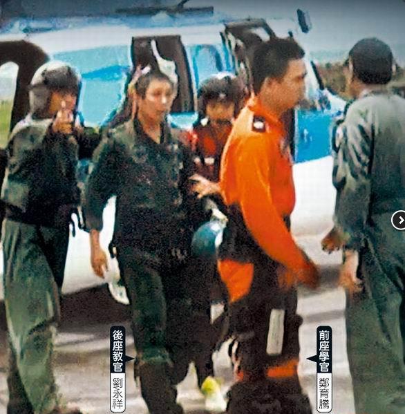 聯(lián)隊(duì)上校中隊(duì)長(zhǎng)呂永隆說(shuō),鄭育騰的右眼后側(cè)有擦傷,手肘瘀傷,劉永祥左手肘及左小腿有瘀血和擦傷。他說(shuō),鄭育騰半年前調(diào)來(lái)聯(lián)隊(duì),總飛行時(shí)數(shù)為292小時(shí),幻影2000戰(zhàn)機(jī)飛行時(shí)數(shù)僅6小時(shí),之前飛過(guò)AT-3、T-34、F-5E戰(zhàn)機(jī);昨由擁有1745飛行時(shí)數(shù)的資深飛官劉永祥擔(dān)任教官,不料起飛不到半小時(shí),飛機(jī)就故障。
