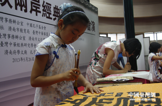 學(xué)生表演書法。(中國臺(tái)灣網(wǎng) 朱煉 攝)