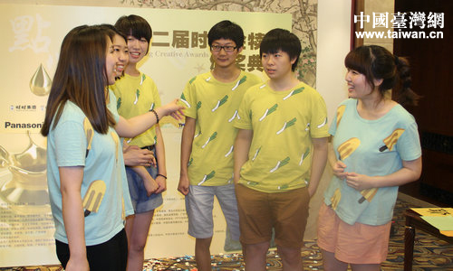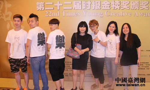 來自上海工藝美院的獲獎(jiǎng)團(tuán)隊(duì)和指導(dǎo)老師。(中國臺(tái)灣網(wǎng) 郭瑩瑩 攝)