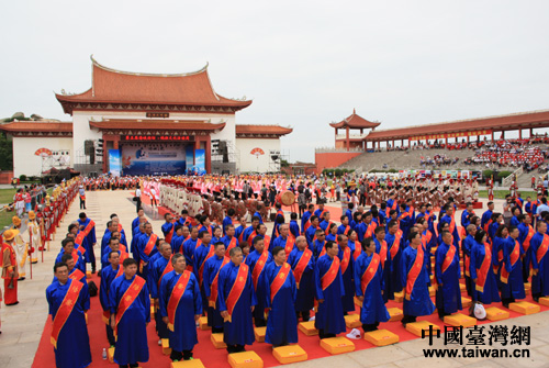 中國臺(tái)灣網(wǎng)6月14日莆田消息 6月14日上午,來自臺(tái)灣179家媽祖宮廟的970名信眾代表在湄洲祖廟天后廣場(chǎng)參加了媽祖祭祀大典。臺(tái)灣信眾身著傳統(tǒng)服裝,行三跪九叩祭拜之禮,在媽祖金身前,同祈兩岸福祉。