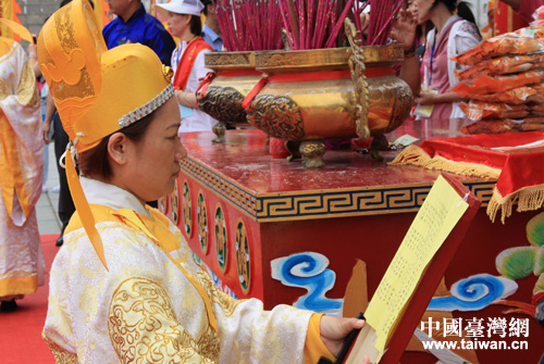 禮生宣讀祝文。(中國臺(tái)灣網(wǎng) 樊玉嬌 攝)