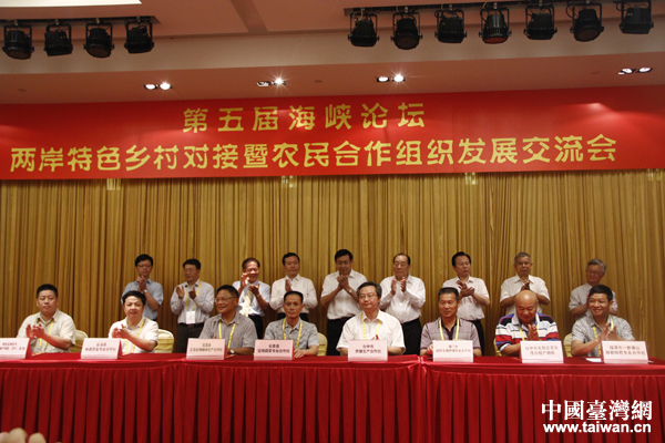 中國臺灣網(wǎng)6月15日廈門消息 第五屆海峽論壇活動之一:兩岸特色鄉(xiāng)村對接暨農(nóng)民合作組織發(fā)展交流會15日上午在廈門舉行。來自大陸的農(nóng)業(yè)專家、基層農(nóng)技干部、福建農(nóng)民合作社的代表,與來自臺灣中南部基層的農(nóng)民、農(nóng)會、農(nóng)業(yè)產(chǎn)銷組織的代表及在大陸發(fā)展的臺灣農(nóng)民等,共200多人參加了交流會。會上,50家福建農(nóng)民合作社和臺灣50個農(nóng)業(yè)產(chǎn)銷組織開展對接交流活動,并簽訂對接合作交流協(xié)議。
