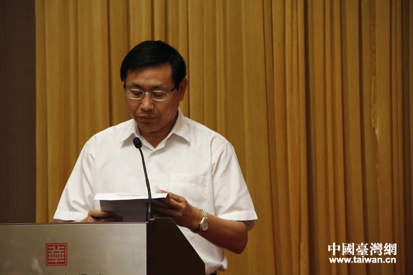 兩岸特色鄉(xiāng)村對接暨農(nóng)民合作組織發(fā)展交流會15日上午在廈門舉行。農(nóng)業(yè)部總經(jīng)濟師畢美家在會上致詞。(中國臺灣網(wǎng)記者 蕪同 攝)