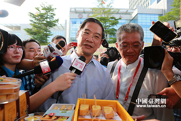 6月16日下午,中共中央臺辦主任張志軍在第五屆海峽論壇期間走進臺灣特色廟會,了解臺灣業(yè)者經營情況,品嘗原汁原味的臺灣小吃,大贊好呷(閩南語:好吃)!。ㄖ袊_灣網 田云鵬 攝)