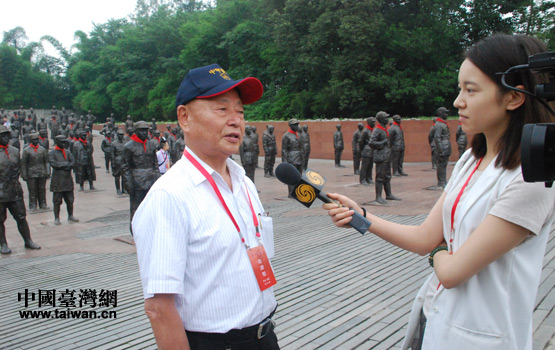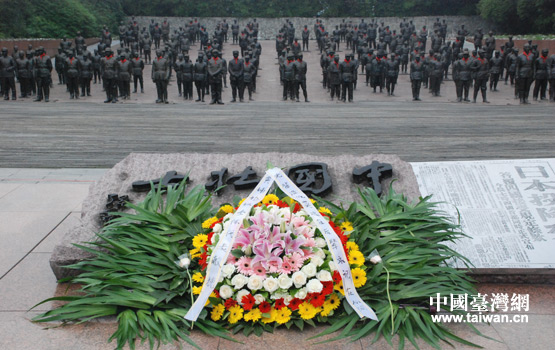 6月17日上午,在中國壯士群雕廣場,兩岸的黃埔親屬、黃埔代表一起,為抗戰(zhàn)英烈雕像敬獻(xiàn)了花環(huán)。(中國臺灣網(wǎng) 李丹 攝)