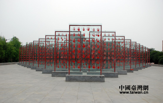 抗戰(zhàn)老兵手印廣場,手印碑林呈勝利的“V”字型。重重疊疊的手印,形成排山倒海之勢,這就是民族力量的真切體現(xiàn)。(中國臺灣網(wǎng) 李丹 攝)