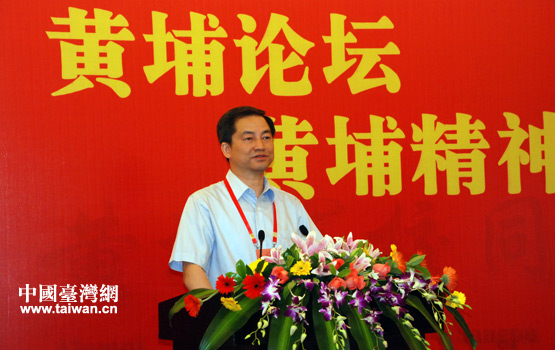 國防大學(xué)教授、《義勇軍進行曲》詞作者田漢之孫歐陽維在會上發(fā)言。(中國臺灣網(wǎng) 李丹 攝)