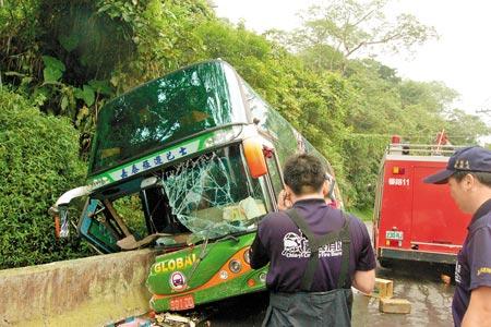 被強(qiáng)大離心力甩到走道上而腦震蕩的張建華說,事發(fā)前感覺車身一直抖,隨后陸續(xù)擦撞路樹和山壁,直到輪子卡在山溝才停止,還好命有保住。
