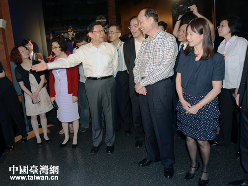 20日下午,海協(xié)會(huì)會(huì)長(zhǎng)陳德銘夫婦與;鶗(huì)董事長(zhǎng)林中森夫婦一起在滬參觀了上海電影博物館與東方明珠。他們?cè)趨⒂^中嘗試電影配音、體驗(yàn)攝影棚錄像,并詳細(xì)了解了上海的歷史發(fā)展。(中國(guó)臺(tái)灣網(wǎng) 王偉 攝)