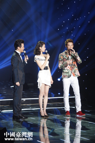 臺灣組合“飛輪!背蓡T之一辰亦儒(右一)參與演唱會主持。(中國臺灣網 張潔 攝)