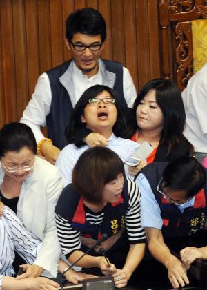 “立法院臨時(shí)會(huì)”原定處理證券交易所得稅修法、公共債務(wù)法與核四“公投”案等,未料“立委”從上午6時(shí)30分起就上演全武行,場(chǎng)面一片混亂,完全失焦!八{(lán)委”王惠美控訴,“綠委”姚文智“從后面抱她、拉她雙臂”,氣得她當(dāng)場(chǎng)痛哭、尖叫;姚文智回應(yīng),沖突難免會(huì)有肢體推擠,但絕未暴力相向。