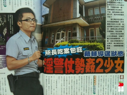 今天出刊的《壹周刊》報道,陳警駕警車載少女到河堤旁、寺廟前及汐止八連變電所等附近空地,車震逞欲,甚至穿著警察制服,要求少女口交,有時載她到休息僅600元新臺幣的汽車旅館發(fā)生性關系。