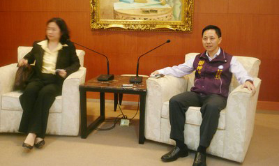 登記參選國民黨主席的中常委謝坤宏(右)25日在律師蔡慧玲(左)陪同下舉行記者會(huì)。(圖片來自臺(tái)媒)