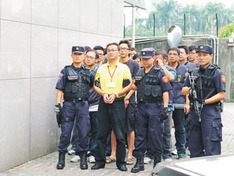 “白狼”張安樂(lè)將返臺(tái),傳黑道可能大陣仗接機(jī),臺(tái)“刑事局”昨天起掃黑;被視為是張安樂(lè)嫡系人馬的竹聯(lián)地堂大哥許伯獎(jiǎng)(黃衣)被檢肅到案。(圖片來(lái)自臺(tái)媒)
