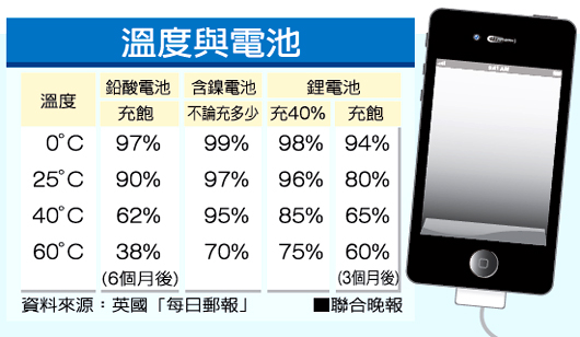 溫度與電池。圖片來(lái)源:臺(tái)灣《聯(lián)合晚報(bào)》