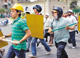 埃及總統(tǒng)穆爾西的政權(quán)岌岌可危,支持者二日戴頭盔,手持棍棒、盾牌,在總統(tǒng)府附近的清真寺外參加集訓(xùn),準(zhǔn)備挺身保護總統(tǒng)。來源:臺灣“中廣新聞網(wǎng)”