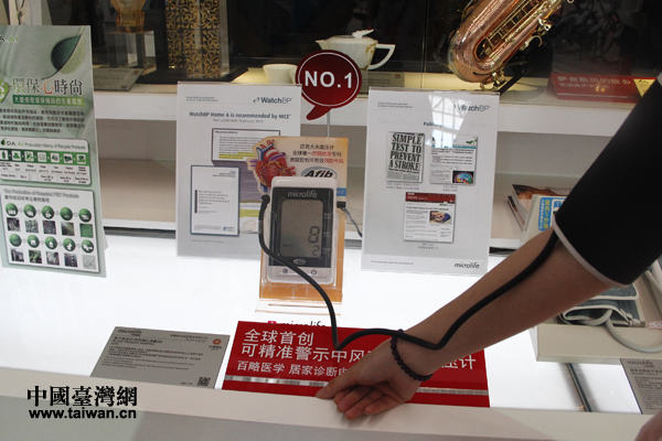全球首創(chuàng)可精準(zhǔn)警示中風(fēng)可能性的血壓計(jì)。(中國臺(tái)灣網(wǎng) 郭慶娜 攝)