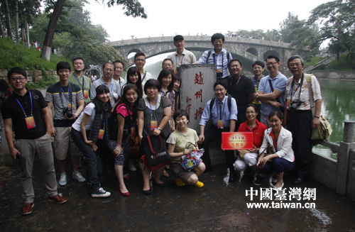 參加“情系燕趙”活動的臺灣文化界人士在趙州橋合影留念(中國臺灣網(wǎng)記者 蕪同 攝)