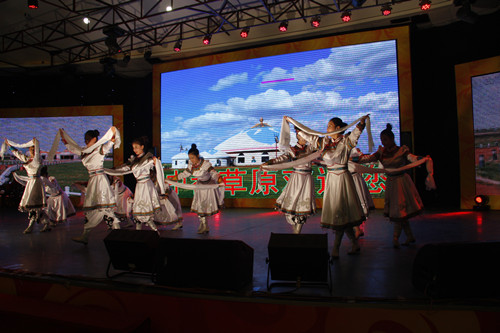 蒙古族姑娘在歡迎宴會(huì)上表演歌舞(中國(guó)臺(tái)灣網(wǎng) 蕪?fù)?nbsp;攝)