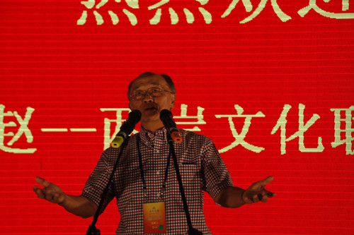 臺(tái)灣嘉賓團(tuán)榮譽(yù)團(tuán)長(zhǎng)程建人在歡迎晚宴上致辭(中國(guó)臺(tái)灣網(wǎng) 蕪?fù)?nbsp;攝)