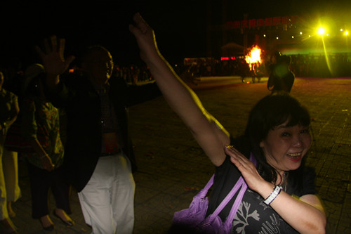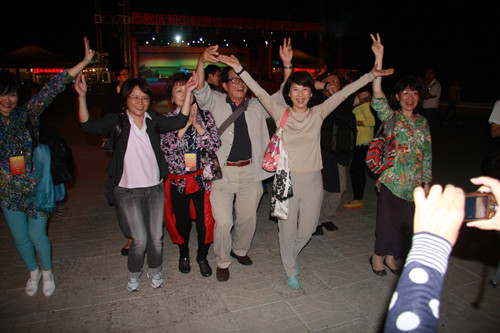 臺灣嘉賓在篝火晚會上盡情的舞著(中國臺灣網(wǎng) 蕪?fù)?nbsp;攝)