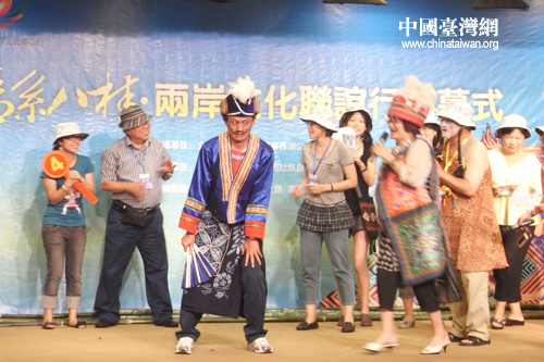 對各位臺(tái)灣嘉賓來講,最關(guān)心的莫過于籌備兩岸文化界嘉賓大聯(lián)歡。這場大聯(lián)歡,是每屆“情系”活動(dòng)的重場戲,一般安排在活動(dòng)的最后一天閉幕式上,方式是由兩岸文化界嘉賓以參觀旅行中的大巴車為單位,各顯其能,或發(fā)揮自已特長,或反串角色拿出看家本領(lǐng),充分奉獻(xiàn)出自己的聰明才藝。每年的大聯(lián)歡節(jié)目都屢有創(chuàng)新,笑料百出,驚奇不斷,精彩絕倫,因此被稱為一年一度的兩岸文化界民間“春晚”。2010年“情系八桂”的《劉三姐歷險(xiǎn)記》,2012年“情系齊魯”的“新編孟母三遷”、穿越劇《當(dāng)GAGA女神遇到孔圣人》,都堪稱是不可多得的佳品。臺(tái)灣文化界嘉賓們表示,參加排練演出的經(jīng)歷就像回到了中學(xué)生的快樂時(shí)代,通過演出,讓我們更加融合。