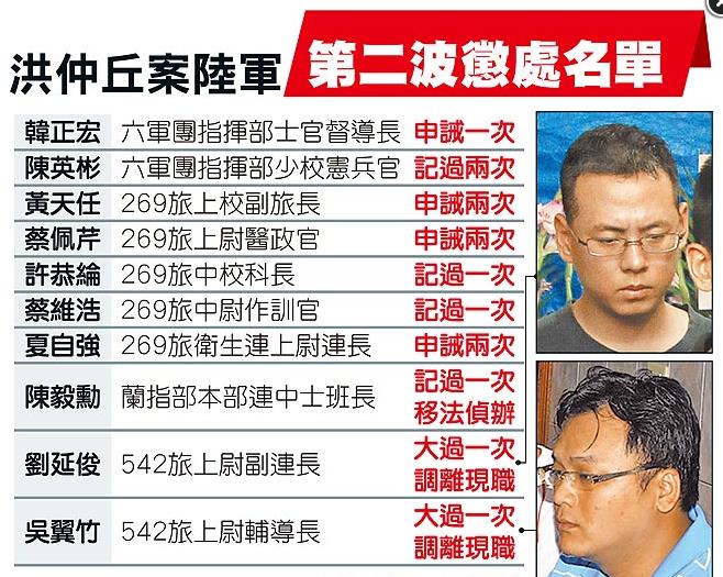 洪仲丘死亡案,陸軍第二波懲處名單。(圖片來自臺媒)